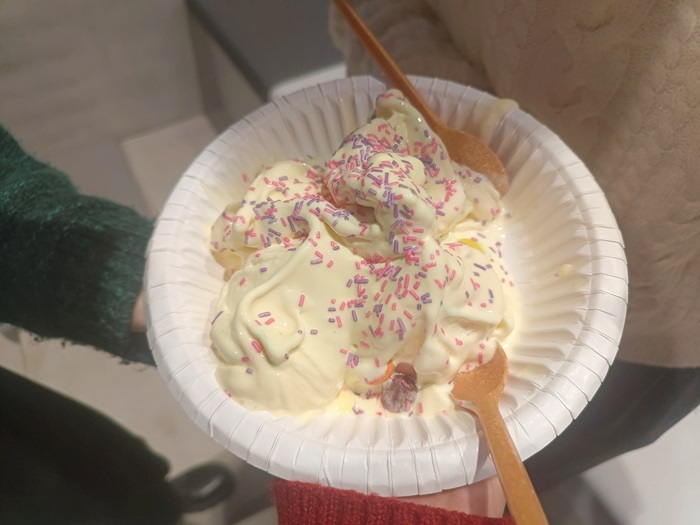随后,我们乘坐芬兰的火车前往图尔库。一路上白雪皑皑,美丽极了,果然是“圣诞老人的故乡”。在图尔库大学我们进行了为期3天的学习。 我们参观了隐藏在森林中的天文馆,躺在柔软舒适的座椅上窥宇宙之神秘、领略极光之绚烂,弥补了大家没看到极光的遗憾;我们进入了植物园和动物标本展览馆,在讲师的讲授声中领略“植物王国”的美丽;我们还进入了实验室,在探究液体密度的实验中窥见了“彩虹”,在液氮的“咆哮”中制作出了美味的冰淇淋,亦动手探究了磁悬浮和卫星的奥秘。