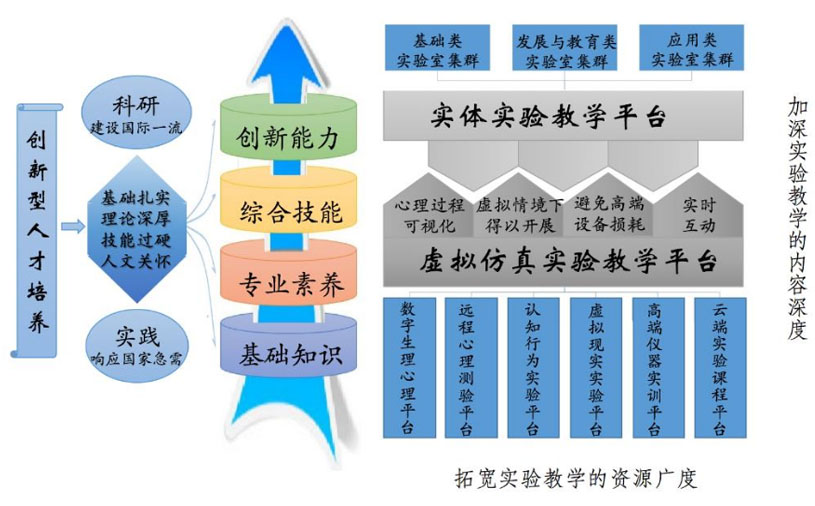 北京师范大学心理学虚拟仿真实验教学中心依托于北京师范大学心理学院。北京师范大学是中国心理学的发源地,心理学的教学和科研可以追溯到1902年的京师大学堂师范馆。2001年,根据北京师范大学学科建设规划,心理学系、发展心理研究所和心理健康与教育研究所合并成立了北京师范大学心理学院,是我国历史上第一个心理学院,开启了北师大心理学科发展的新篇章。历经百年的积淀与建设,在几代人的努力,北京师范大学心理学院在心理学教学和研究方面均已处于国内领先地位,心理学科连年排名全国第一,“精神病学与心理学”和“神经科学与行为科学”已进入ESI世界前1%,在国际心理学界发挥着日益重要的作用。 依托于北京师范大学厚重的心理学科基础,1997年,北京师范大学在心理学系实验室的基础上成立“心理学基础教学实验中心”,并于2001年通过了北京市心理学基础实验教学中心的评估。2009年,我中心被列为北京市实验教学示范中心,并于2014年以优异成绩通过了北京市教育委员会的验收。2012年,我校心理学基础教学实验中心被列为国家级实验教学示范中心建设单位,使心理学实验教学改革有了更好的保障与依托。 创新与发展是我们一贯秉承的理念。面对传统心理学实验教学难以解决的瓶颈和信息时代心理学实验教学中出现的新问题,我们瞄准国际前沿和国家急需,在国家级实验教学示范中心建设单位的基础上,在教育部虚拟现实应用工程研究中心的支持下建立了北京师范大学心理学虚拟仿真实验教学中心。中心在教学条件建设、实验教学改革、实验课程体系建设、师资队伍建设、实验平台建设、信息化管理与教学等方面取得了显著成效。教学条件建设方面,中心充分利用实验教学经费,构建了专供虚拟仿真实验教学的移动心理实验教学平台,并开辟出单独的机房供学生练习虚拟仿真实验教学项目,同时中心对实验中心信息化基础建设加大投入,使虚拟仿真教学设备具备相当规模,充分满足了对本校及兄弟院校本科生虚拟仿真实验教学的需要;实验教学改革方面,中心瞄准“创新型人才培养”的目标,鼓励实验教师在教学中将虚拟仿真实验教学与实体实验教学充分结合,通过以实为主,虚实互补的全新教学模式,全面拓展了实验教学的深度、学科内容的广度及学科资源的宽度;实验课程体系建设方面,中心建立了完善的虚拟仿真实验教学学科架构,建成了兼具科研方法与技能训练,并全面涵盖基础型、综合型、创新型实验项目的课程体系;师资队伍建设方面,中心已构成一支水平高、梯度合理、教研结合的实验教学队伍,中心教师既具备丰富的理论知识与教学经验,又有扎实的科研实践能力,兼备虚拟仿真教学项目建设经验,充分保障了虚拟教学的高效可持续发展;实验平台建设方面,中心不断充实完善平台架构,搭建起成熟的教学管理平台、教学资源平台和教学共享平台,三大平台的结合充分满足了虚拟仿真教学中心的信息发布、实验课程管理、实验教学、教学成果评测和教学资源共享等需求;信息化管理与教学方面,中心配备了专职实验技术人员,由具有计算机编程背景的年轻教师担任核心管理职务,并定期为专兼职实验教师举办信息化教学的培训。中心在各方面取得的成绩有效地支撑了心理学人才培养、科学研究和社会服务,发挥了重要的辐射与示范作用。