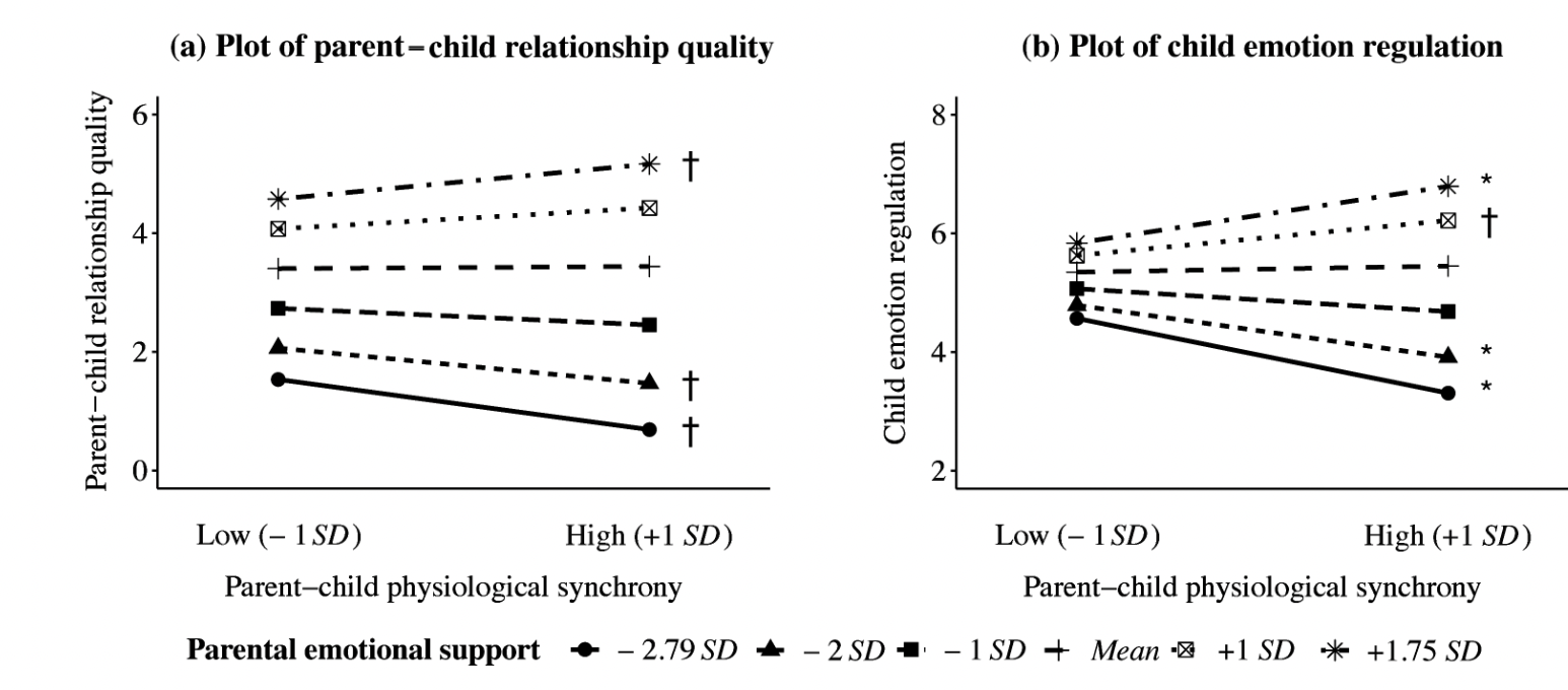 韩卓教授课题组在发展心理学研究领域著名期刊Developmental Science上发表题为“A context-dependent perspective to understand the relation between parent–child physiological synchrony and child socioemotional adjustment”的研究成果,揭示亲子生理同步与亲子互动质量和儿童的情绪调节能力的关系会因互动过程中家长表现出的情感支持水平的差异而存在不同。 亲子生理同步 (parent-child physiological synchrony)是指亲子在互动中彼此生理活动协调一致的程度,有助于亲子之间建立稳固的情感联结和依恋关系,促进儿童情绪和社会性发展。然而,目前关于亲子同步性的程度与儿童社会情绪适应之间的关系尚无一致的结论。部分研究发现亲子互动过程中高水平的生理同步性与儿童更高水平的社会情感能力相关,然而也有相当一部分的研究发现了相反的结果。亲子生理同步的情境观指出,亲子生理同步是一个客观的指标,并没有“好坏”之分,其与儿童发展结果间的关系需要结合互动情境来探讨。本研究目的是探究和回答“亲子生理同步与儿童社会情绪适应之间的关系究竟是具有情境特异性还是跨情境一致”这一关键科学问题。 本研究招募了150对小学生亲子。亲子共同完成4分钟的冲突讨论任务,实验过程中记录双方的生理活动(即呼吸性窦性心律不齐,是指由呼吸而引起的心率节律性变异程度,反映了迷走神经对心脏活动的影响),并基于此计算亲子在互动过程中的生理同步性程度。同时,通过行为编码的方式评估父母的情感支持水平、亲子互动质量,以及儿童的情绪调节能力。结果表明,父母的情感支持水平调节了亲子生理同步与亲子互动质量和儿童情绪调节能力间的关系。具体来说,在积极的情感环境中,即在亲子互动过程中家长对儿童表现出较高的情感支持水平时,亲子生理同步性越高,互动中表现出的亲子互动质量越高,儿童表现出的情绪调节能力也越好;然而在消极情感环境中,上述关系出现了反转,即亲子生理同步性越高,亲子互动质量和儿童的情绪调节能力都会更差。本研究为亲子生理同步的情境观提供了重要的实证证据,揭示了结合特定的互动情境来探讨亲子生理同步的意义的重要性。