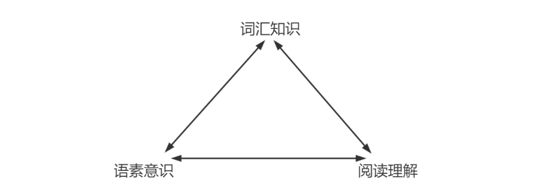 图1 汉语阅读能力的“黄金三角” 语素(最小的语义单位)、词汇和文本属于不同层次的语义单元。儿童处理这三种语义单元的能力分别为语素意识、词汇知识和阅读理解。随着儿童不断地接触书面语言,语素意识、词汇知识和阅读理解三者之间逐步发展出相互预测的交互关系。特别是在汉语这一表意文字体系中,儿童学习阅读时更依赖于语义处理,这进一步突显了在汉语儿童中三者之间的紧密联系。因此,该研究假设语素意识、词汇知识和阅读理解构成汉语阅读能力的“黄金三角”(图1),彼此之间相互促进。
