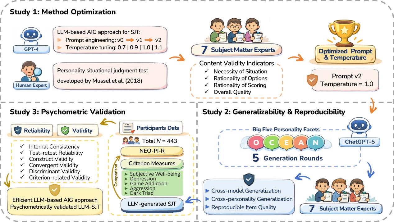 论文信息: Li, C.-J., Zhang, J., Tang, Y., & Li, J. (2026). Automatic item generation for personality situational judgment tests with large language models. Computers in Human Behavior Reports, 21, 100964. //doi.org/10.1016/j.chbr.2026.100964