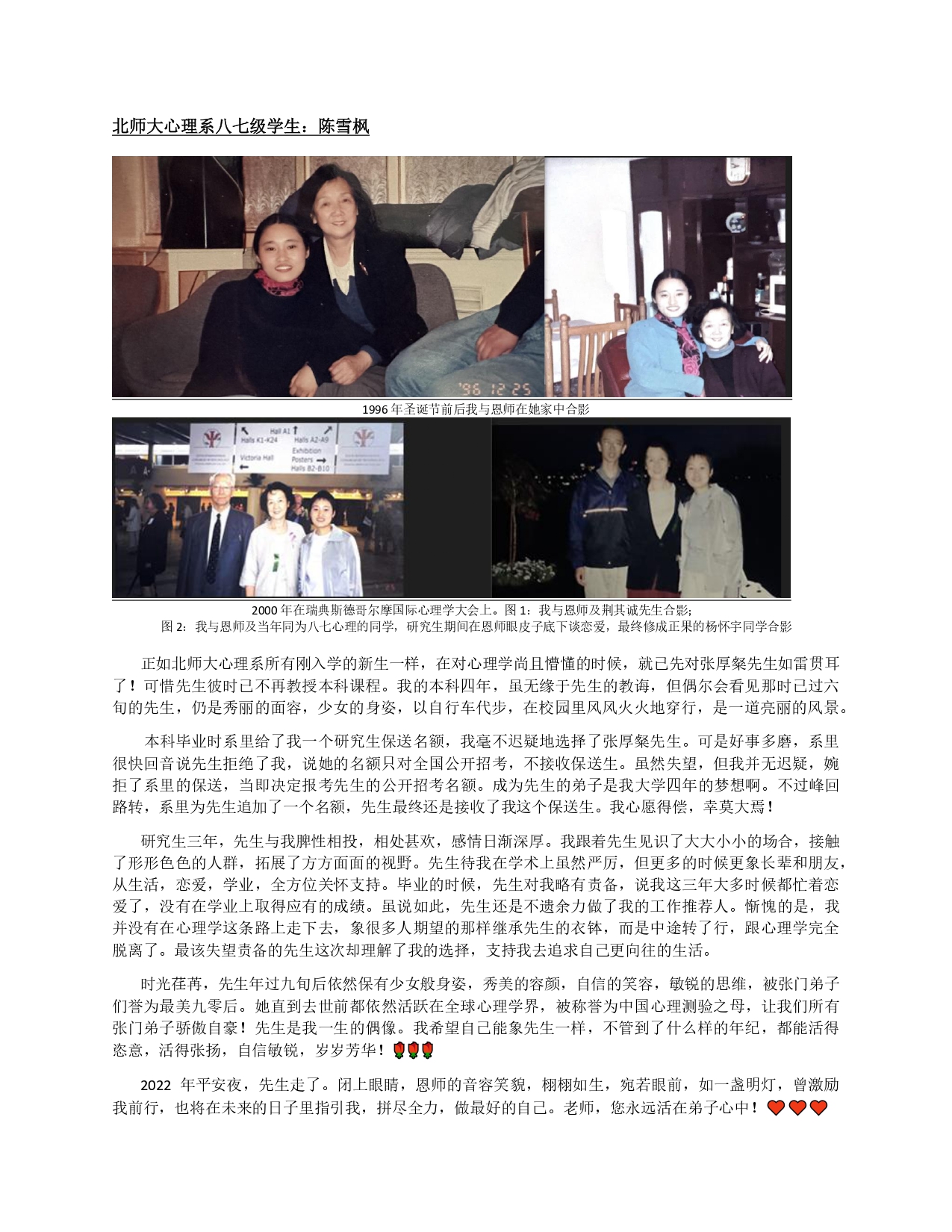 纪念文章 | 教泽流芳,山高水长——深切悼念张厚粲先生
