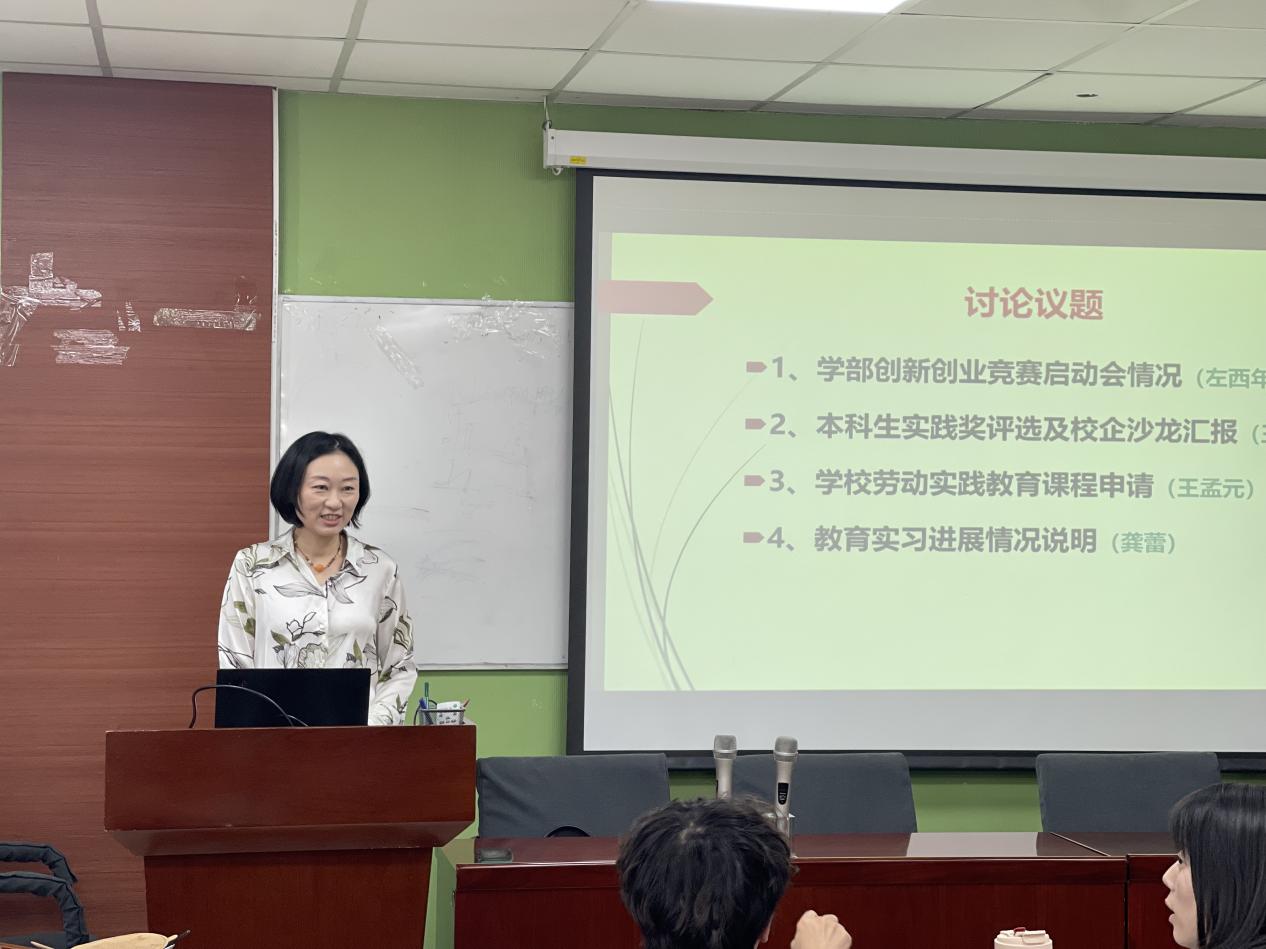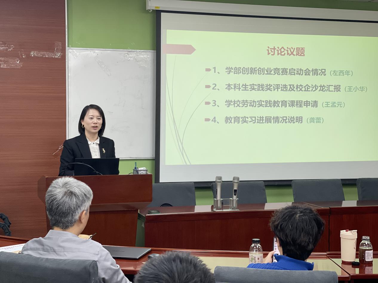 王小华老师就本科生实践奖评选、校企沙龙举办情况进行全面汇报,强化活动成果转化,推动实践育人常态化、长效化。王孟元老师针对学校劳动实践教育课程申请事宜作专题说明。最后,龚蕾老师从教育实习、教育研习及教育实习总结三个维度,全面介绍教育实习相关工作进展。 本次会议通过系统梳理各项工作进展、明确核心任务与实施路径,进一步凝聚了育人共识,为持续完善博彩网站 本科人才培养体系、提升人才培养质量奠定了坚实基础。