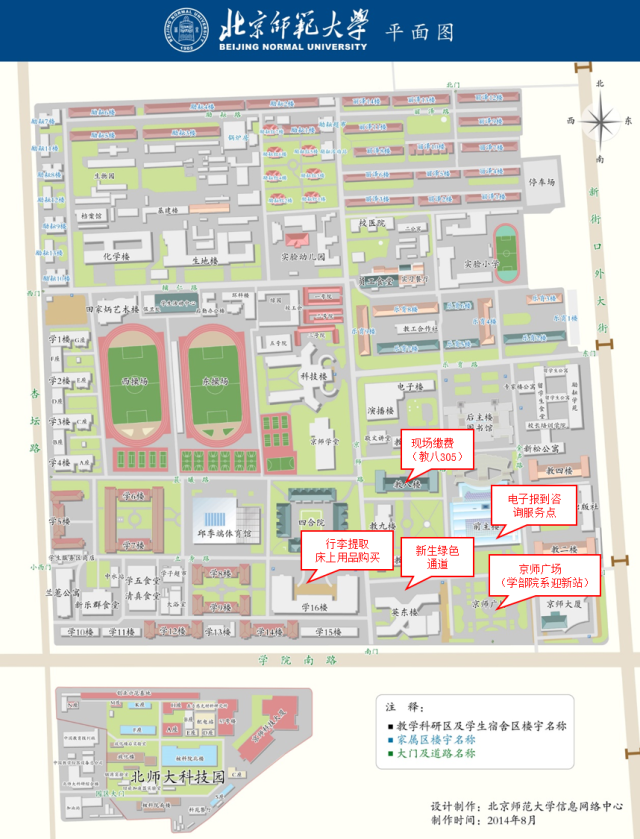 四、报到事宜 1. 报到时间 (1)本科、学术硕博报到安排: 9月3日(周六)7:00-14:00,请在规定时间报到,如7点前到校可先行去宿舍楼办理入住后再来迎新站。 如本科、学术硕博无法在以上指定时间完成报到注册(如14点后抵校,或因疫情滞留家乡等),可待9月5日起工作日前往相应办公地点办理(本科、心理硕博-后主楼1404、后主楼1430;国重硕博-英东楼422)。 已经在昌平入住的硕博连读新生,可先暂缓报道注册,待可返回本部后前往本部相应办公室办理。 (2)专业硕士报到安排: 9月2日9:00-14:00、9月3日10:00-14:00,在金丰和办理注册手续,具体以MAP中心通知为准。 2. 报到流程 (1) 入校 海淀校区从大东门、大西门、广场西南门入校,昌平校区从北门入校。全程要戴口罩,保持一米间隔排队入校。测体温、检查核酸检测报告、扫“入校码”,无异常者方可入校。入校后第一时间在木铎的西北侧、大西门、大东门做一次核酸。送学生的车辆和家长、亲友一律不得入校。 (2) 办理报到注册手续 本科生:京师广场“体育博彩网站 迎新站”报到领取材料 → 后主楼1318提交户档组织关系材料 → 宿舍楼办理入住手续 学术硕博(非国重):京师广场“体育博彩网站 迎新站”报到领取材料 → 后主楼1318提交户档组织关系材料 → 宿舍楼办理入住手续 学术硕博(国重):京师广场“体育博彩网站 迎新站”报到领取材料 → 英东楼办理提交户档组织关系材料 → 宿舍楼办理入住手续(具体以国重通知为准) 专硕:9月2日、3日在金丰和办理手续。 (下图为在昌平住宿学生办理入住流程,如7:00-14:00能在本部完成报到注册,可乘坐校车前往昌平校区;如14:00之前无法抵达本部办理报到注册,可直接自行前往昌平校园办理入住,先暂缓报道注册,待可返回本部后前往本部相应办公室办理。)