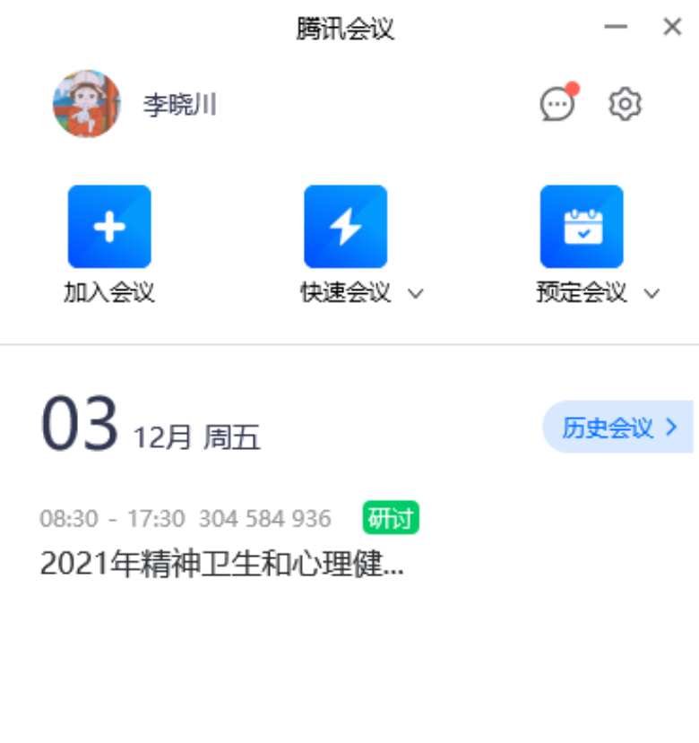 3.12月3日下午 精神卫生分会场 开始时间:2021年12月03日 13:30 腾讯会议号码:695-470-003 观众参会链接://meeting.tencent.com/dw/Jf6xxwfgZlyU 参会二维码:
