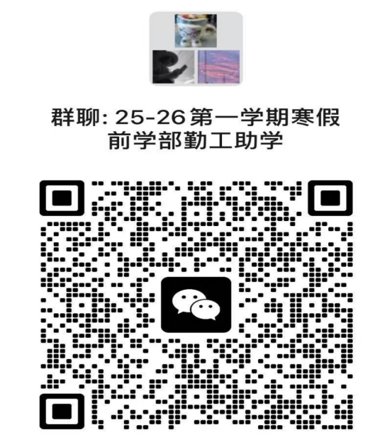 寒假前值班时间从下周一(1月12日)开始,请大家按照公示中的安排准时到岗值班,如有问题,请在1月10日中午12点前反馈情况到邮箱[email protected]。 如对排班没有异议,请拟录用同学扫描下方二维码进入工作群,将“群昵称”修改为:姓名+办公室+联系电话,以便于后续相关工作的开展。