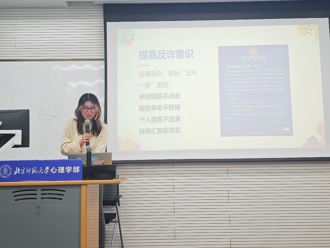 接下来由班长董霖同学主持,进行了安全教育主题班会和寒假分享。 班长在交通安全、防火安全、网络安全、人身安全、生命安全和政治安全等方面对同学们进行安全教育提醒,向同学们介绍讲解了安全知识,尤其对反诈意识进行了重点强调。通过多种典型案例和身边的真实案例,她提醒同学们要提高反诈意识,远离电信诈骗,牢记反诈的“三不一多”原则。