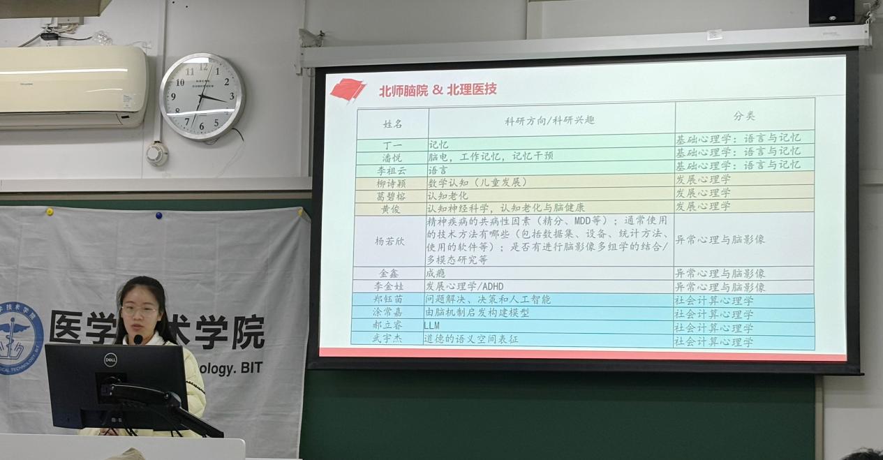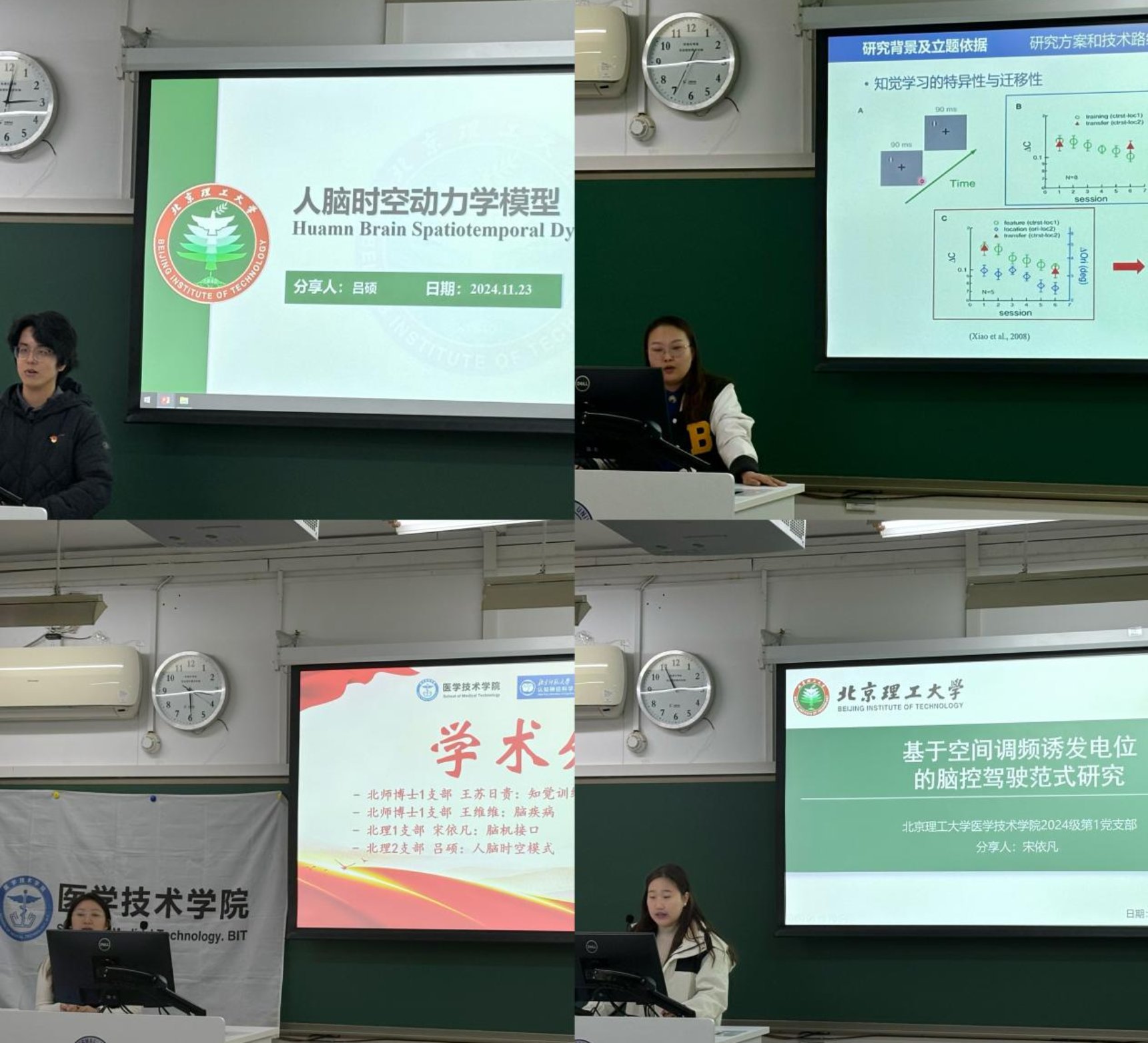 在学术分享环节,北京师范大学博士第一党支部的王苏日贵和王维维同志分别以“知觉训练对TEO神经元编码的影响”和“脑疾病”为主题进行学术分享。北京理工大学硕士第一党支部的宋依凡同志向大家介绍了脑机接口,第二党支部的吕硕同志则介绍了人脑时空模式。这些分享不仅拓宽了与会党员的学术视野,也激发了大家对科学研究的热情。