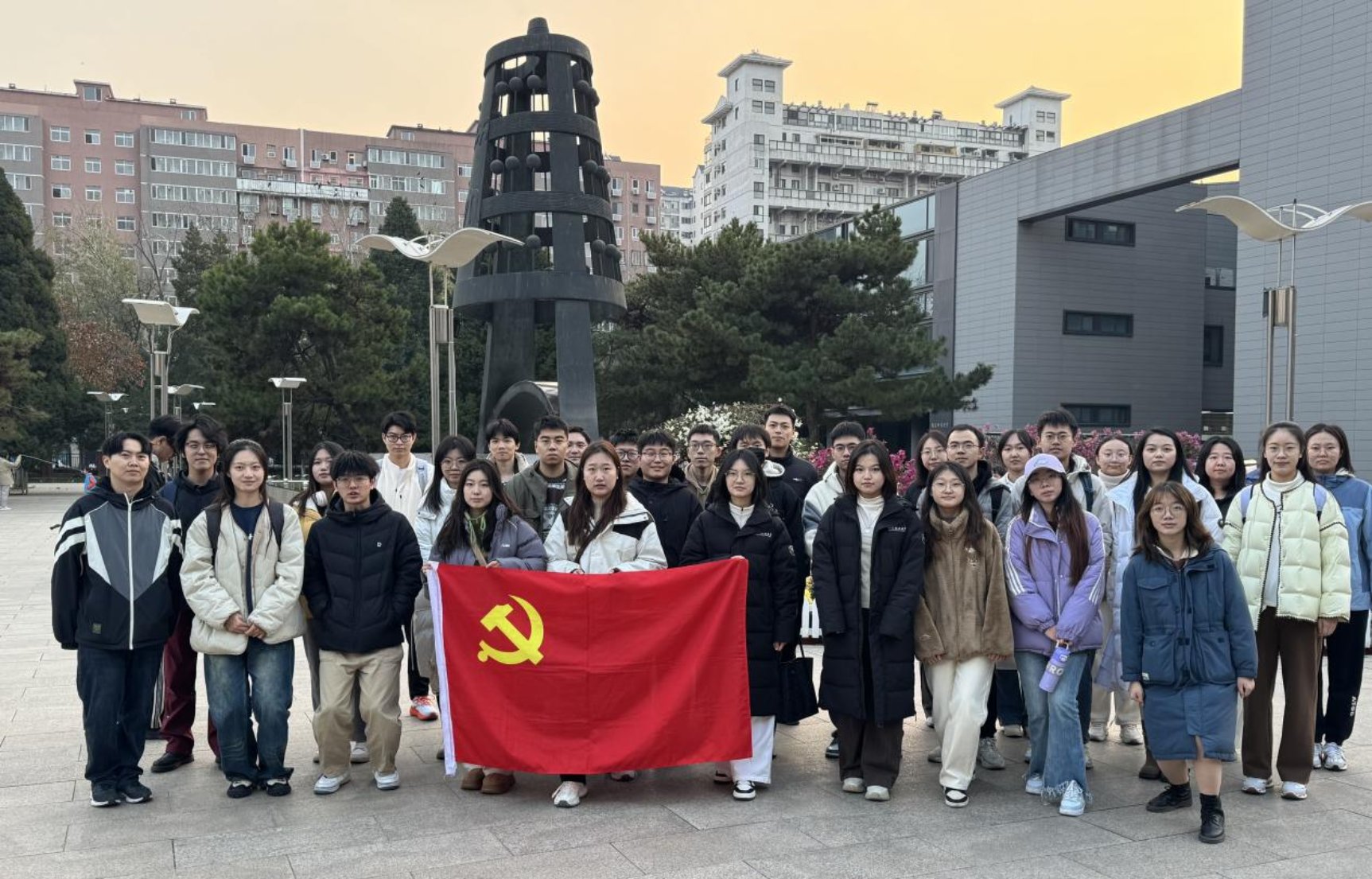 活动最后,全体成员在京师广场上的木铎雕塑前合影留念,为此次联合党日活动画上圆满的句号。本次党日活动不仅加深了党员同志们对文化强国建设重要性的认识,也为今后的工作和学习指明了方向;不仅加深了两校党员之间的相互了解,也为未来的学术合作奠定了坚实的基础。