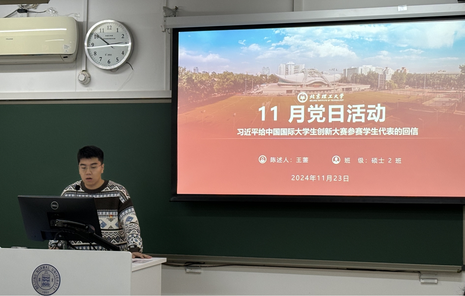 随后,北京理工大学医学技术学院硕士第二党支部的王蓥同志就“习总书记对‘互联网+’大赛回信”这一主题进行了汇报分享。习近平总书记高度重视青年一代的创新创业教育,多次强调创新是引领发展的第一动力,青年是国家和民族的希望,创新是青春远航的动力,创业是青春搏击的能量。总书记的回信体现了对青年一代的殷切期望和对教育事业的高度重视,鼓励广大青年积极投身创新创业实践,为实现中华民族伟大复兴的中国梦贡献智慧和力量。