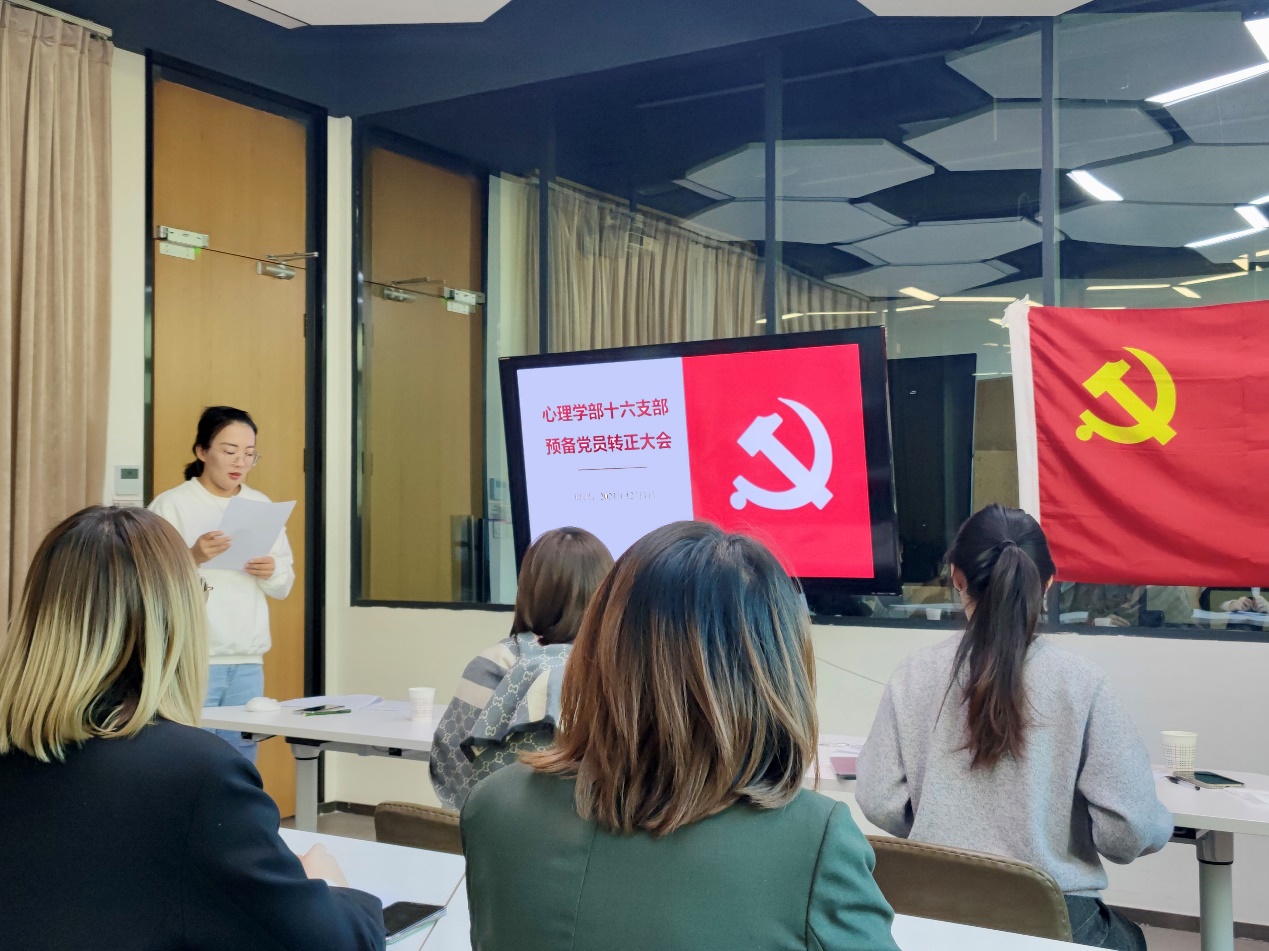 2021年12月1日中午1点,北京师范大学体育博彩网站 研究生第十六党支部在金丰和305会议室召开了2021-2022学年秋季学期预备党员转正大会。本次会议由党支部书记左慧芸主持,支部理论指导老师刘春荣副部长莅临指导,唐闻悦、苏羽佳两位同志按期转为正式党员,光荣的加入党组织。 转正大会严格按照体育博彩网站 党员转正工作规定流程开展。 大会第一项,全体参会人员起立唱国际歌,随后支部书记左慧芸介绍转正大会流程。