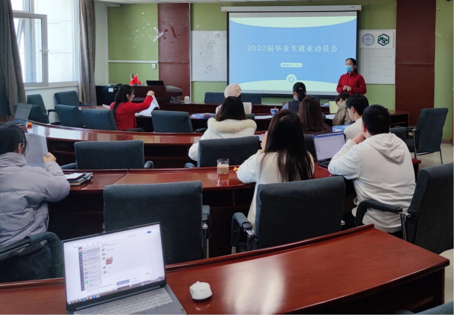 为了更加高效且顺利的推进2022届毕业生就业工作,体育博彩网站 于2021年11月12日下午14点,在后主楼1420召开“2022届毕业生就业动员会”,参会人员有:体育博彩网站 学生工作负责人王瑞敏老师,体育博彩网站 学生实习就业工作专员李昕益老师,体育博彩网站 专硕工作负责人史佳鑫老师,以及2022届全体毕业班班主任和班级就业联络员。 会议开始,是为各个毕业生班主任发放就业派遣相关材料,并对各类材料发放进行详细说明。