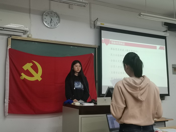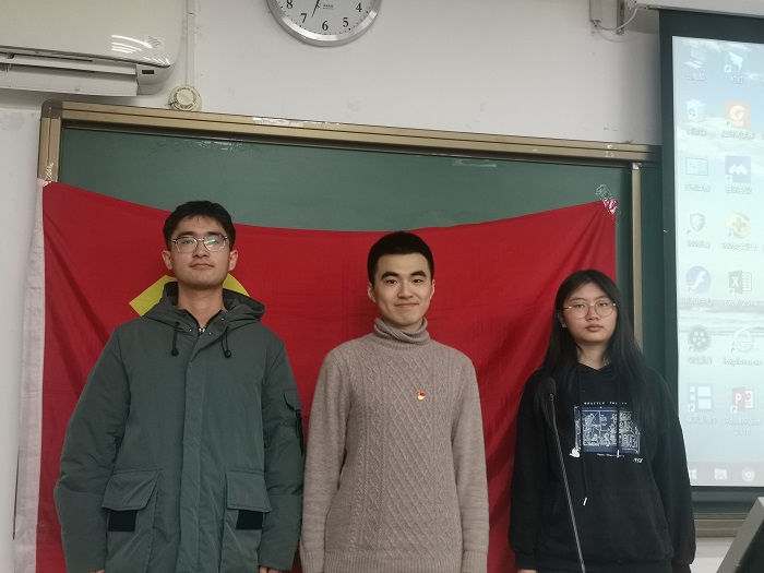 之后,预备党员李宁、谭静文和连阳宇分别向党组织汇报了他们在预备党员期间的思想、工作和学习各方面的表现。这三位同志表示自己在一年来学习到了许多,获得了许多成长,也正确地认识了自己的不足,同时也表明在成为一名正式党员后,会不断完善和提高自己。