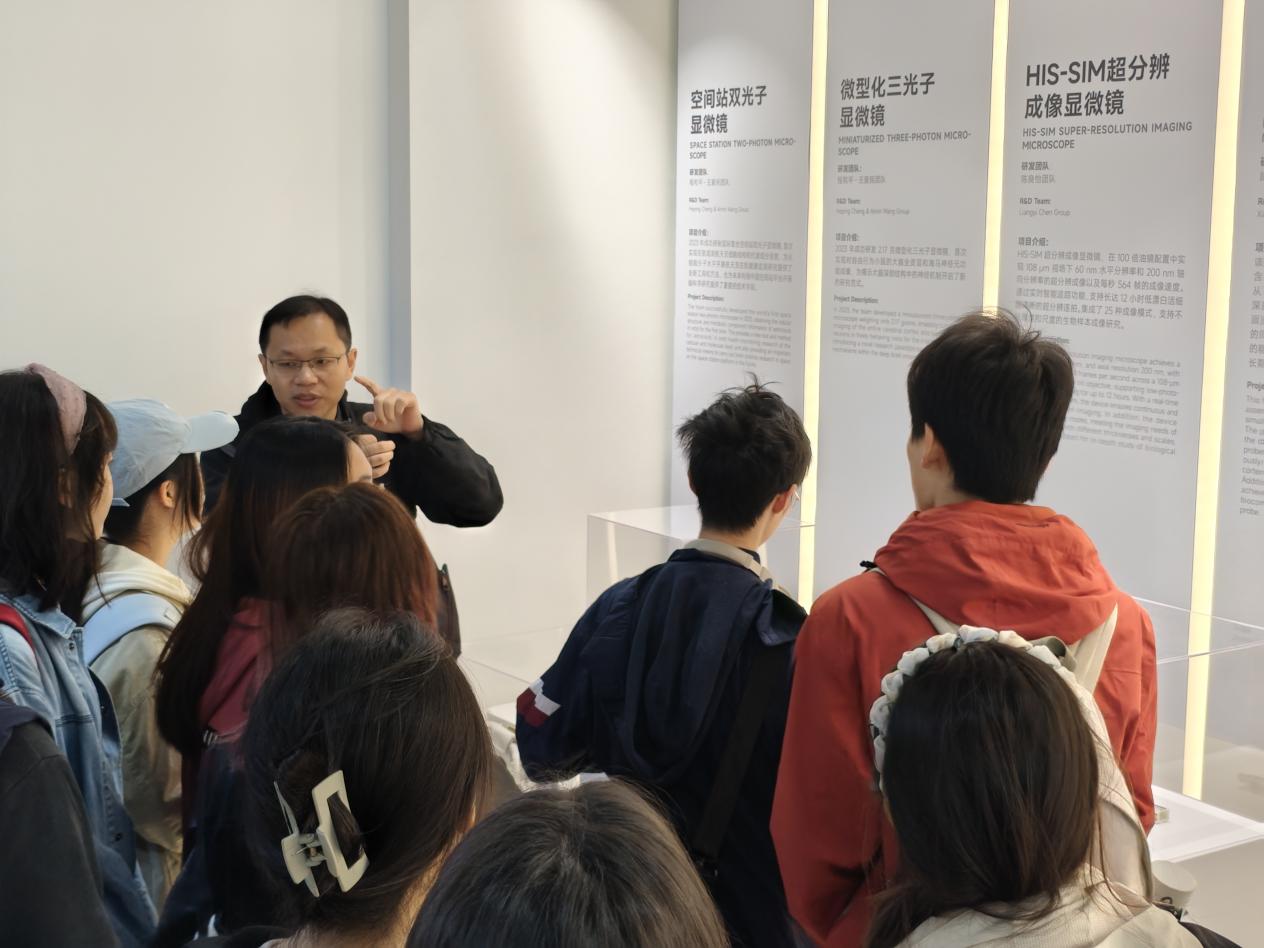 接着,我们前往参观样品制备与模式动物中心。样品制备与模式动物中心是为生物医学成像科学研究和设备研发过程中所涉及的动物实验验证和致病机理研究提供实验动物饲养、实验动物疾病模型制作、分子生物实验、研发仪器配套器件的研发和改造、样品保存等全方位的技术支持和保障。 图为组织样本库,配备有-80℃冰箱室、液氮生物样本库 平台同时还配备有手术室、动物实验室、影像室、代谢实验室等,可提供疾病模型制备、动物疾病表型分析等技术服务。 第三站是医学成像楼。此处配备的多模态医学成像装置旨在对完整生命体的组织器官进行结构和功能成像,在体研究大脑认知和重大疾病(肿瘤、心脑血管等)的多参数的时空关联性。在这里,我们参观并了解了新一代高灵敏脑磁图成像系统、人体7T磁共振成像仪器等“大国重器”,并学习了相关设施运行原理及基本的成像诊断方法。 最后,我们来到细胞成像楼。多模态活体细胞成像装置聚焦于以高时空分辨率成像方式记录生理状态下活体内的精细生命活动。此装置包括活体细胞组织高分辨成像、细胞高时空分辨成像、介观-微观多模态成像等多个子系统。 至此,怀柔脑科学大设施参观圆满结束。 此次 2024 级励耘班团支部参观北京大学国家生物医学成像科学中心的团日活动圆满结束。大家在领略“国之重器”风采、解锁脑科学知识的过程中,收获满满,既拓宽了科学视野,又激发了探索热情。作为新时代青年,我们定会将这份对科学的敬畏与追求转化为学习动力,努力提升自我,为科技发展贡献力量,不负青春韶华!