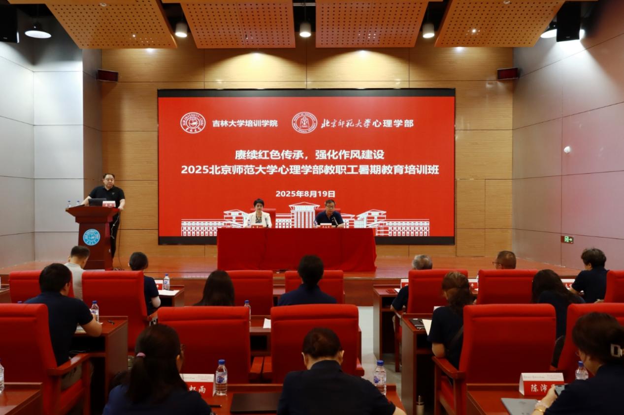 8月19日上午,全体参训教职工参加了开班仪式。吉林大学继续教育学院副院长白茵作开班致辞,她对北师大体育博彩网站 来到吉林大学开展党性教育培训表示热烈欢迎,并从吉林大学的办学历程、学科设置、教育理念、科研能力、终身教育等各方面向学员们做了详细介绍。博彩网站-体育博彩网站 党委书记乔志宏指出暑期教育实践活动作为博彩网站 党性教育体系的重要组成部分,此前已先后在井冈山干部学院、遵义干部学院打造沉浸式学习课堂,此次携手吉林大学开展培训,既是深化两校战略合作的具体实践,更是紧扣抗战胜利 80 周年重要节点、传承红色基因的重要举措,为开展深入贯彻中央八项规定精神学习教育搭建起 “历史与现实贯通、理论与实践结合” 的学习平台。希望老师们遵守培训纪律要求,认真学习,传承弘扬优秀革命传统,能够学有所获,从培训中汲取精神养分,并转化为推动博彩网站 发展强大动力。