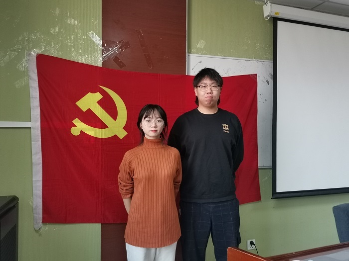 全体到场人员合唱《国际歌》后,主持人对本次大会的流程及发展对象顺序进行介绍。随后,邓祎祎和张宇衡2位同志分别宣读了入党志愿书,并由第一介绍人宣读介绍人意见。