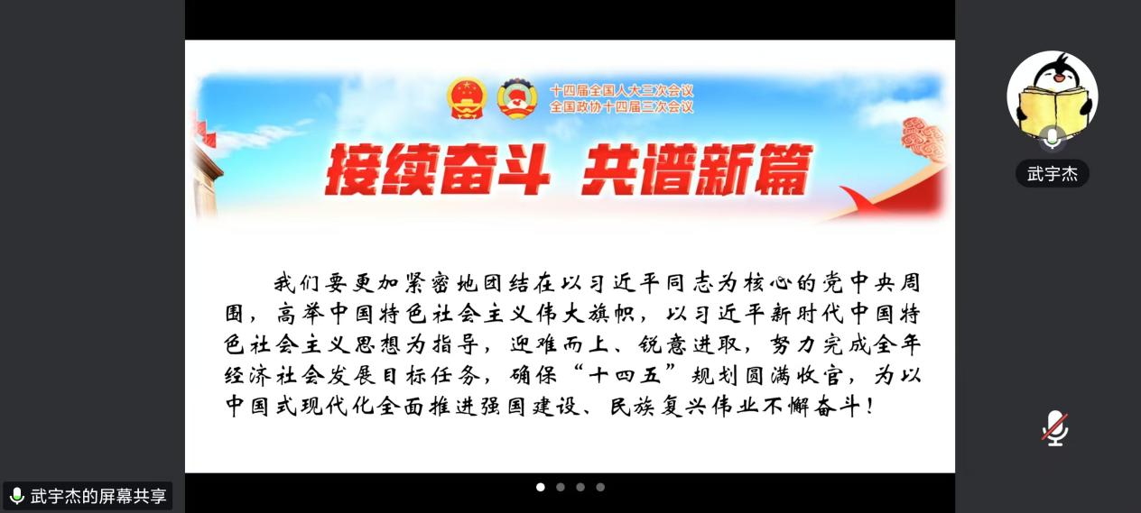 3月4日、3月5日,全国政协十四届三次会议和十四届全国人大三次会议分别在北京隆重开幕,会议聚焦国家发展大计,审议政府工作报告、讨论经济社会发展重大问题,为全面深化改革和“十四五”规划的收官之年谋篇布局。为了引导广大师生深入学习贯彻两会精神,增强责任感与使命感,博彩网站-体育博彩网站 党委积极组织学生党员骨干集中观看两会直播,并号召各党支部开展观看学习与研讨交流活动。博彩网站 师生通过电视、网络等渠道踊跃收看两会盛况,并结合自身学习、生活和工作实际,热议国家发展成就,畅谈感想体会。