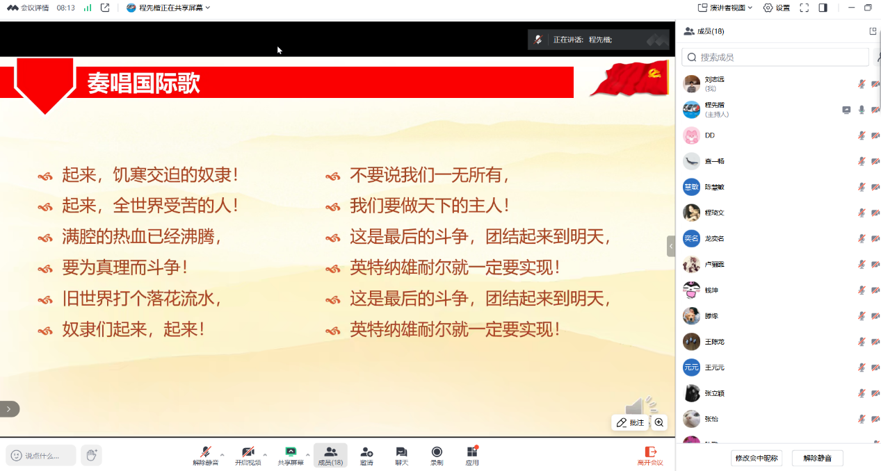 2025年1月25日晚6时,体育博彩网站 2024级学术硕士第二党支部通过线上平台顺利开展本月主题党日活动。会议由党支部书记程先楷同志主持。支部9位正式党员和14位积极分子到场参会。