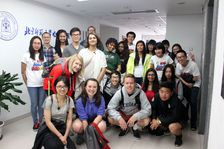 然后,屈楚烟介绍了院训及院徽,王誉蓉讲解了位于十五层的实验室及习总书记来访情况。最后,刘家琛就箱庭疗法、错觉图形等进行介绍。 经过讲解队同学们的讲解,密歇根大学的同学们对北师大心理学院有了更加全面的了解,此次活动圆满结束。