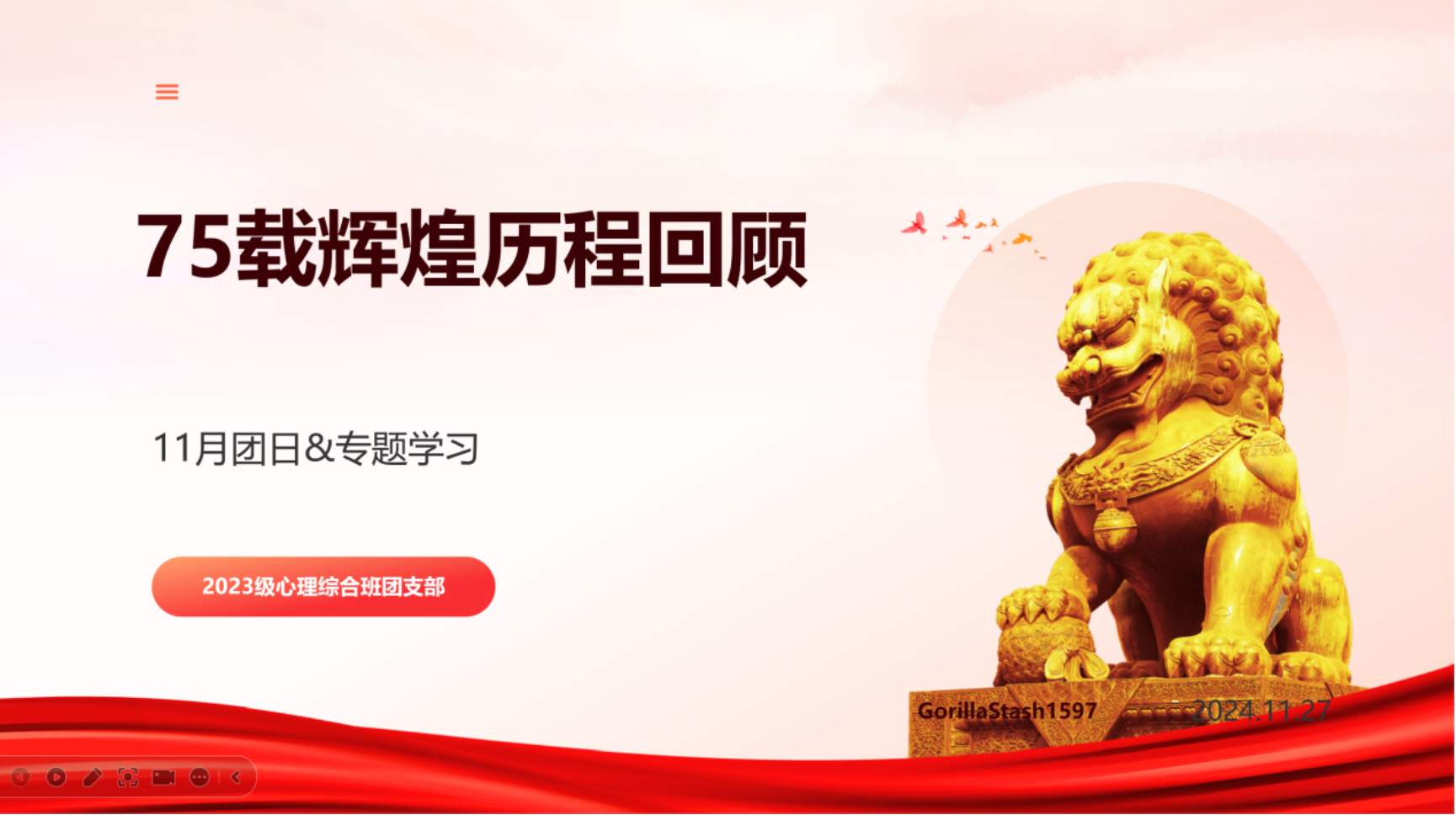 11月28日,体育博彩网站 2023级本科综合班团支部在团支书龙柄屹的主持下线上举办了“庆祝中华人民共和国成立75周年”专题学习活动。本次学习活动通过回顾国家发展历程,加深同学们对国家发展成就、社会变革历程、文化传承与创新、生态环境保护以及国防与军队建设的认识和理解。