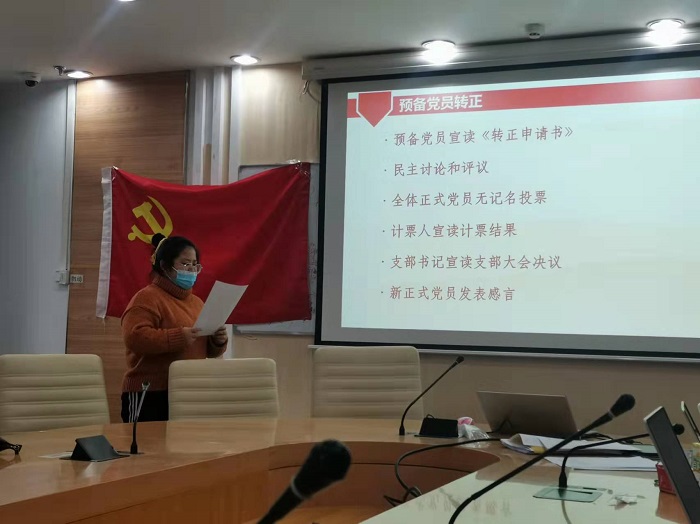 最后,新正式党员发表入党感言,表达了对支部认可自己、培养自己的感激之情以及今后继续努力的决心和方向。