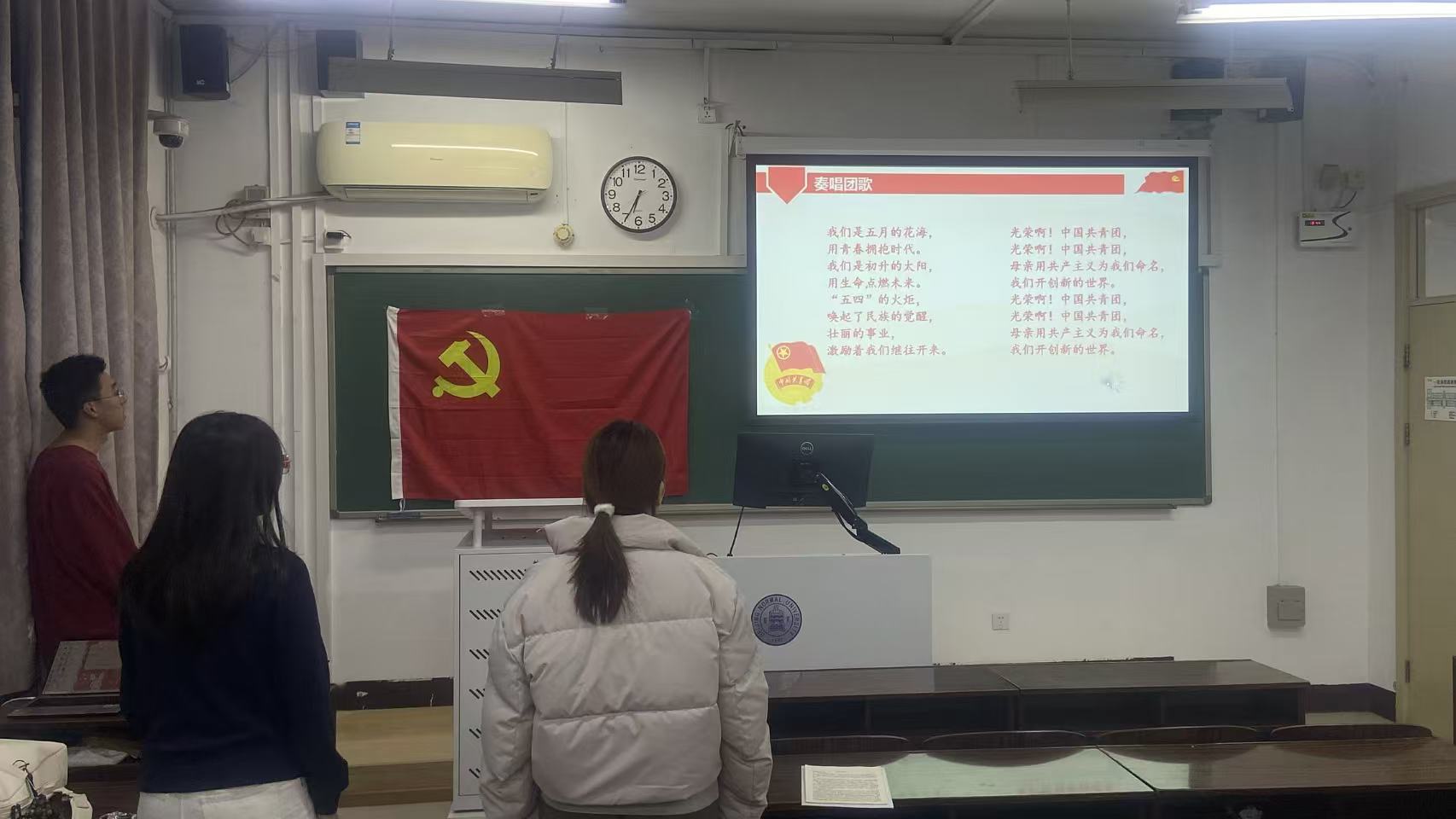 首先开展的是 “志同道合携手行,命运与共创未来——构建人类命运共同体意识教育”主题团日活动,由团支书付晨露同志主持。本次活动主要围绕习近平总书记在《求是》杂志上发表的两篇重要文章展开学习,文章题名分别为《中华民族共同体的形成和发展是人心所向、大势所趋、历史必然》和《推动落实全球发展倡议、全球安全倡议、全球文明倡议、全球治理倡议》。