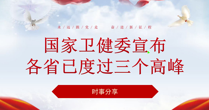 雷亦婷同志分享了“国家卫健委宣布各省已度过三个高峰”的时事新闻。雷亦婷同志首先介绍了国家卫健委宣布实施“乙类乙管”后各省已度过“三个高峰”,即发热门诊高峰、急诊高峰和重症患者高峰。此外,日常的诊疗服务也在逐步恢复。