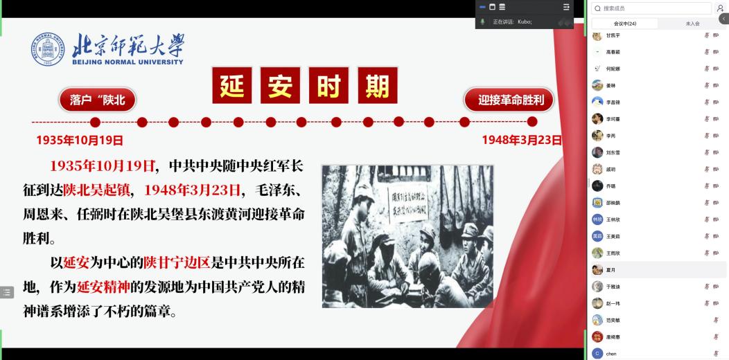 本次专题学习暨主题团日活动邀请了北京师范大学求索学社宣讲团的李骁然讲师,带来了主题为《中国革命走向辉煌的力量之源——延安精神为什么能够永放光芒?》的精彩宣讲。
