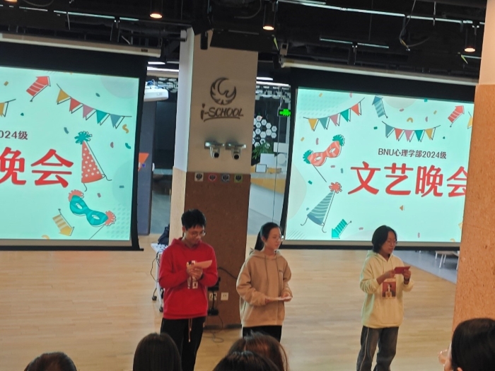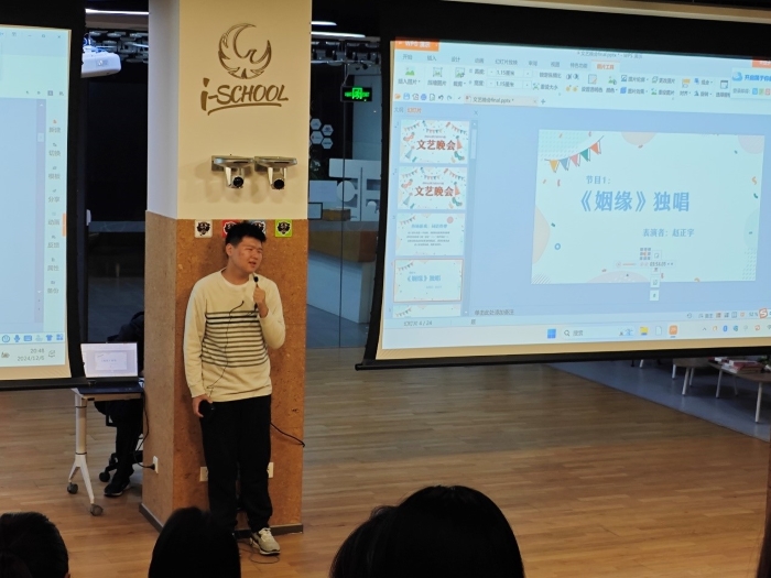 2024年12月6日晚20时至22时,体育博彩网站 2024级本科生文艺晚会于金丰和三楼路演厅圆满举行。 晚会开始,主持人詹恒婧、张雅欣、程依伦,以“词语炸弹”的小游戏开场,点燃了同学们的热情。接着,赵正宇同学演唱的歌曲《姻缘》为晚会正式拉开帷幕;于悦、孙亦果同学表演的《去有风的地方》双人舞,更是让同学们沉浸在温暖宁静的氛围中。