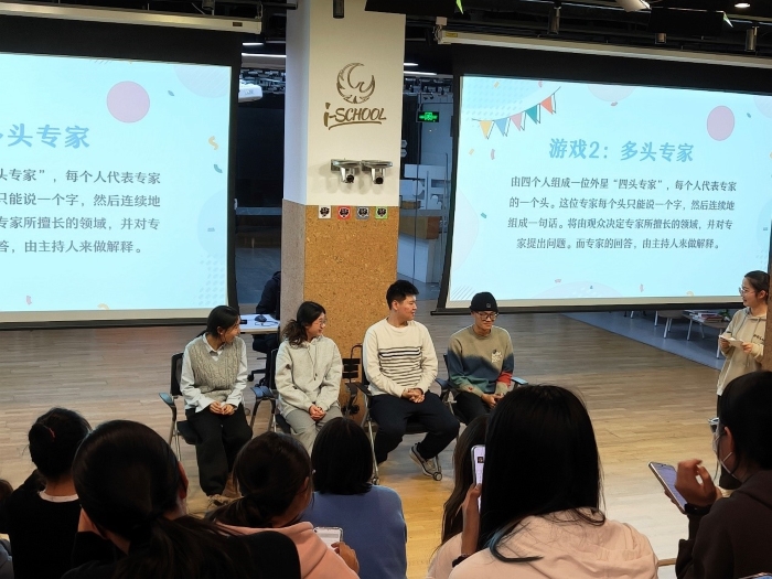 在第一轮激动人心的抽奖环节后,主持人带领大家开展互动游戏 “多头专家“。台上“多头专家”的表现与主持人随机应变的回答让同学们乐不可支。