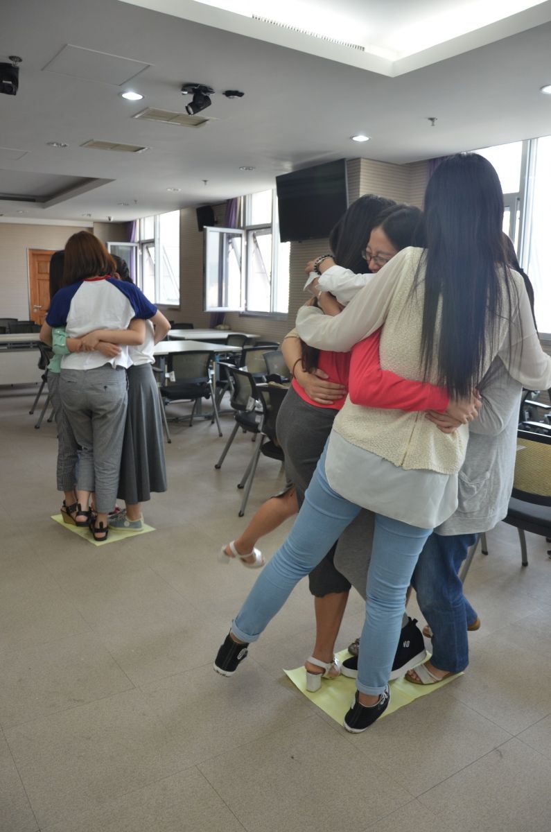 第三部分的主题是“趣味小组比赛”。每个小组在不知道比赛内容的前提下随机派出一名代表参加比赛。比赛的内容设置多样。例如,比较参赛者上衣颜色的深浅,猜测某位同学的鞋子的颜色等等,输的参赛者所在的小组一起表演一个节目,例如:“站报纸”,“哑剧表演”等。通过这个环节,增进了小组成员彼此的了解,促进了成员之间的沟通、协作。大家乐在其中。 图四 北师大心理学院MAP-1班第一次班级活动欢乐瞬间